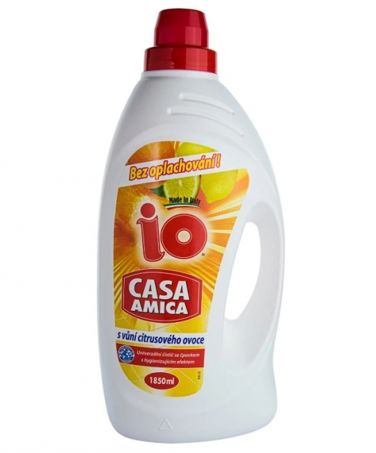 IO CASA AMICA s vôňou citrusového ovocia - Univerzálny a vysoko efektívny čistič s hygienizujúcim účinkom, ktorý využijete na upratovanie celého domu. Čistí a odmasťuje všetky typy domácich povrchov. Vďaka obsiahnutému čpavku a alkoholu povrchy rýchlo usychajú a zostávajú bez šmúh.